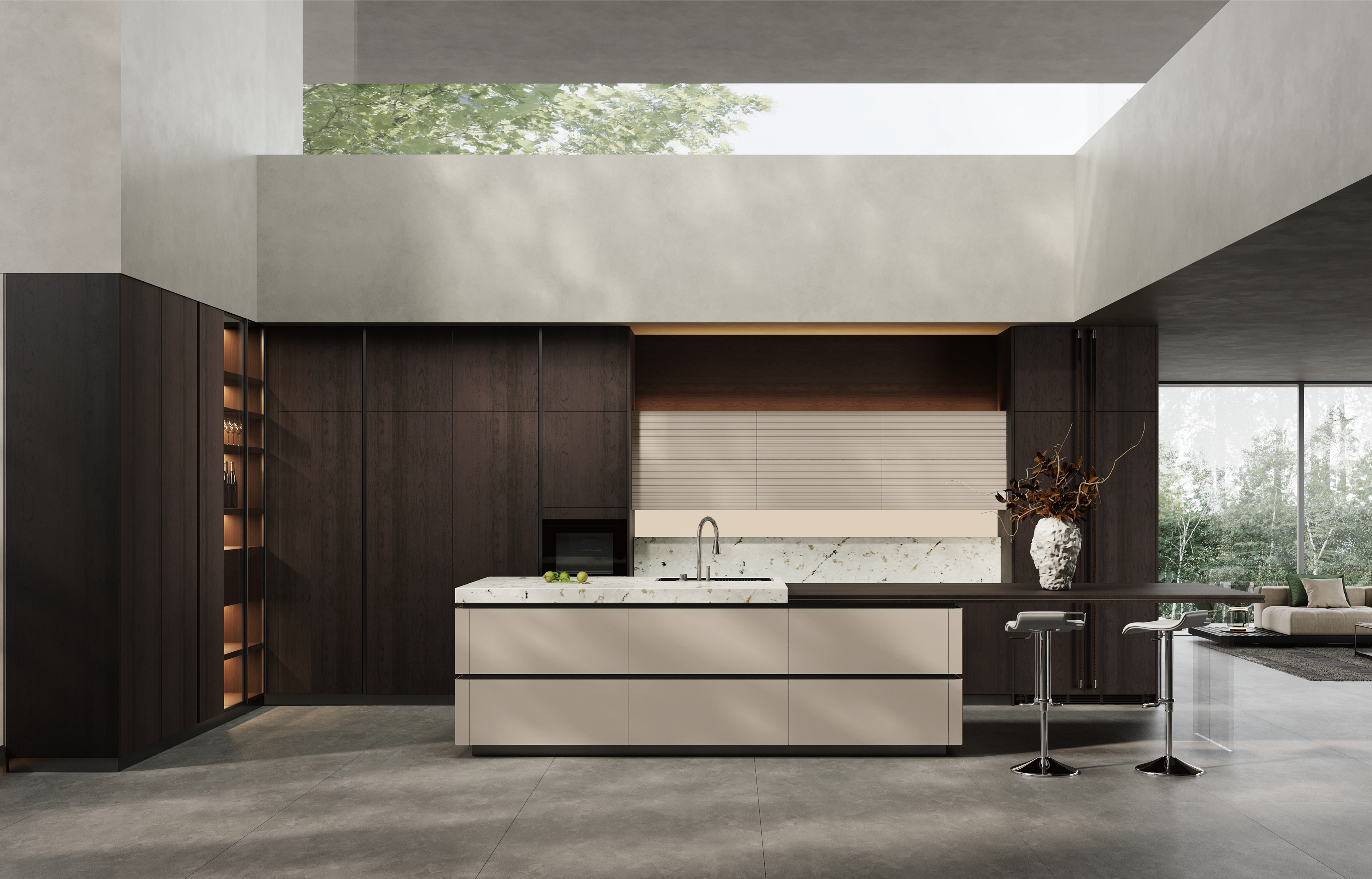通过利来w66厨柜量体裁柜,定制出适合主厨下厨的烹饪区和洗涤区的舒适高度。